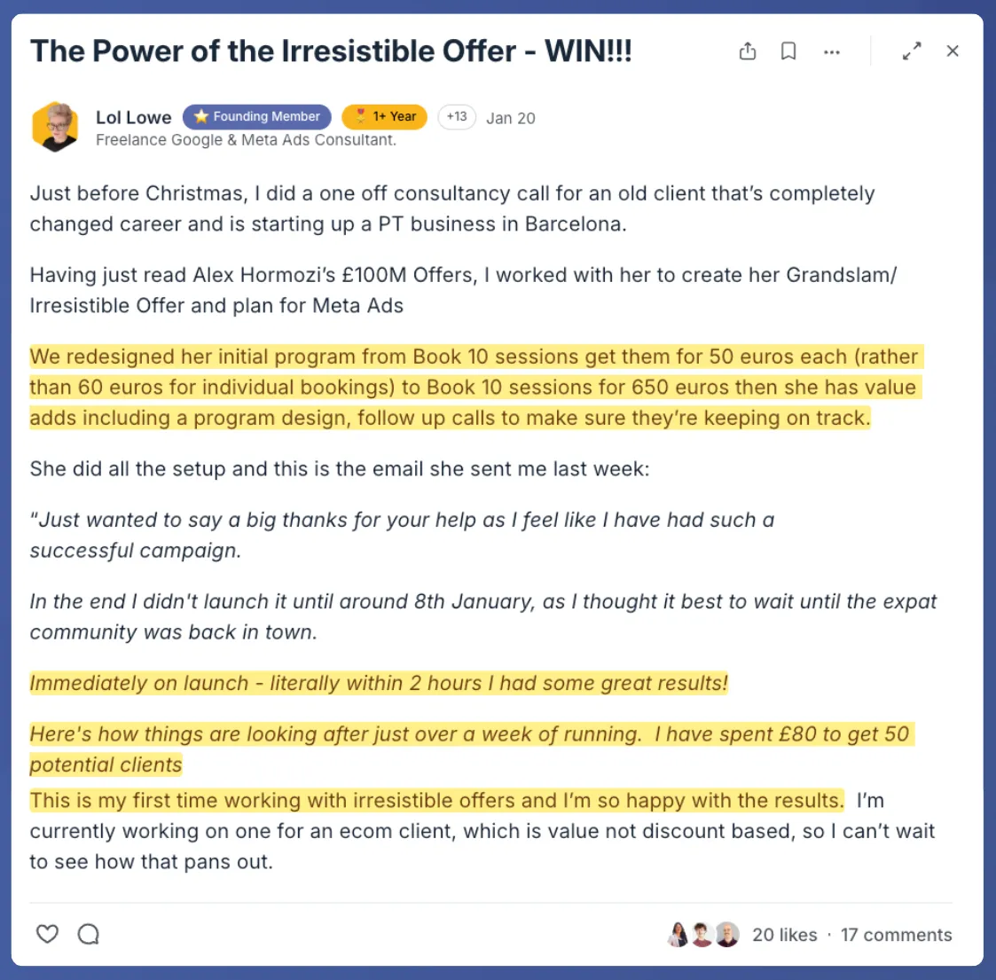 As a result, she drove 50 qualified leads for only £80 ad spend!